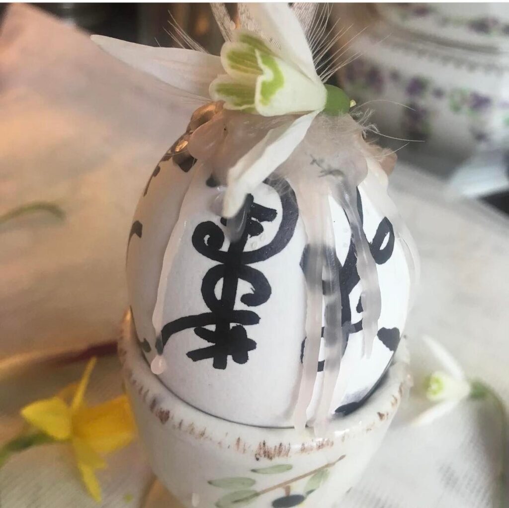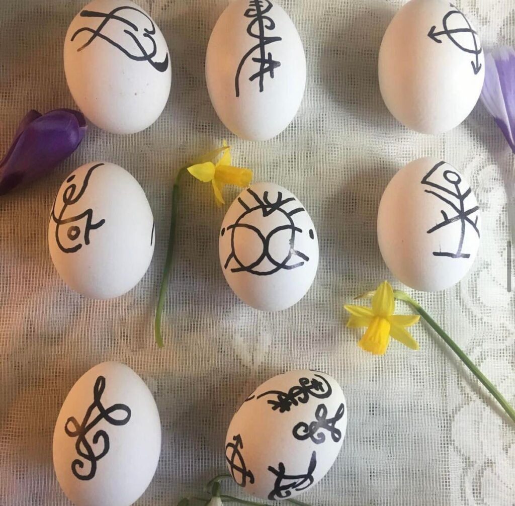 10. På ægget skriver du nu dine magiske sigil eller symboler på de planeter du arbejder med eller vædderes tegn , hvis du arbejder med runer kan du også skrive dem på ægget.